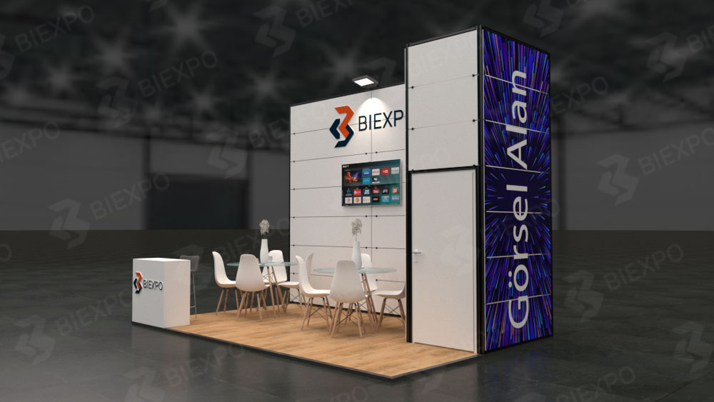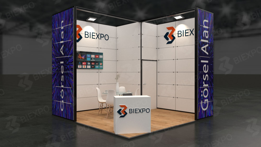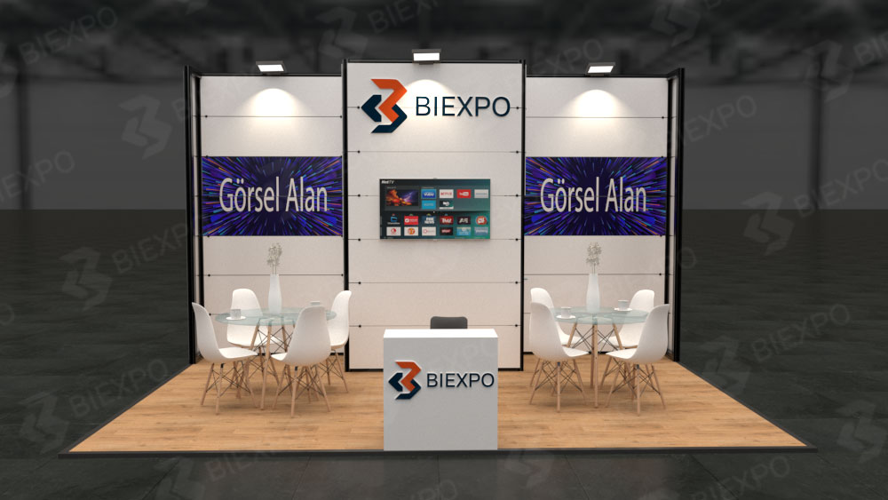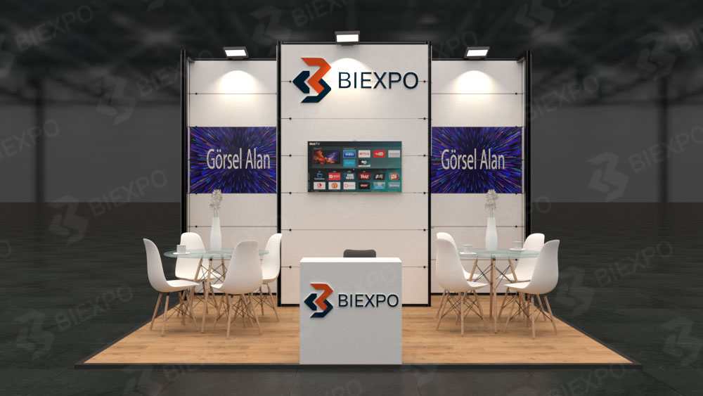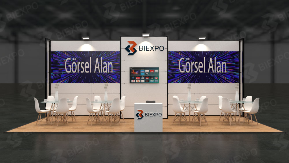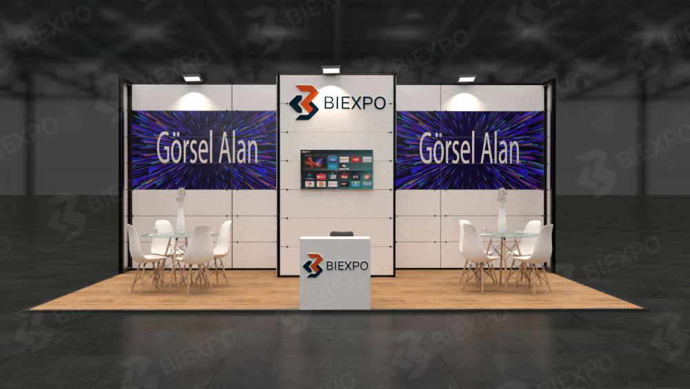 Modüler alüminyum sistemler kullanılarak oluşturulan, fuarlarda hızlı kurulum ve profesyonel görünüm sağlayan hazır stand çözümleridir. Bu sistemler, hem estetik hem de fonksiyonel yapısıyla özellikle sık fuara katılan firmalar tarafından tercih edilir.